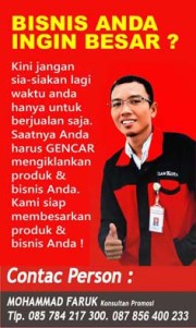 Beberapa klien Iklan Kota sudah sedemikian tahu bahwa eksistensi Iklan Kota tidak hanya sebagai media yang mengiklankan sebuah produk usaha para klien, dimana hubungan kami dengan klien pun sebatas memasang iklan saja, tapi jauh lebih dari itu Iklan Kota senantiasa menjadi mediator, menjadi pemandu bisnis para klien. Terkait bagaimana memulai atau membangun bisnis sampai strategi … Baca lebih lanjut